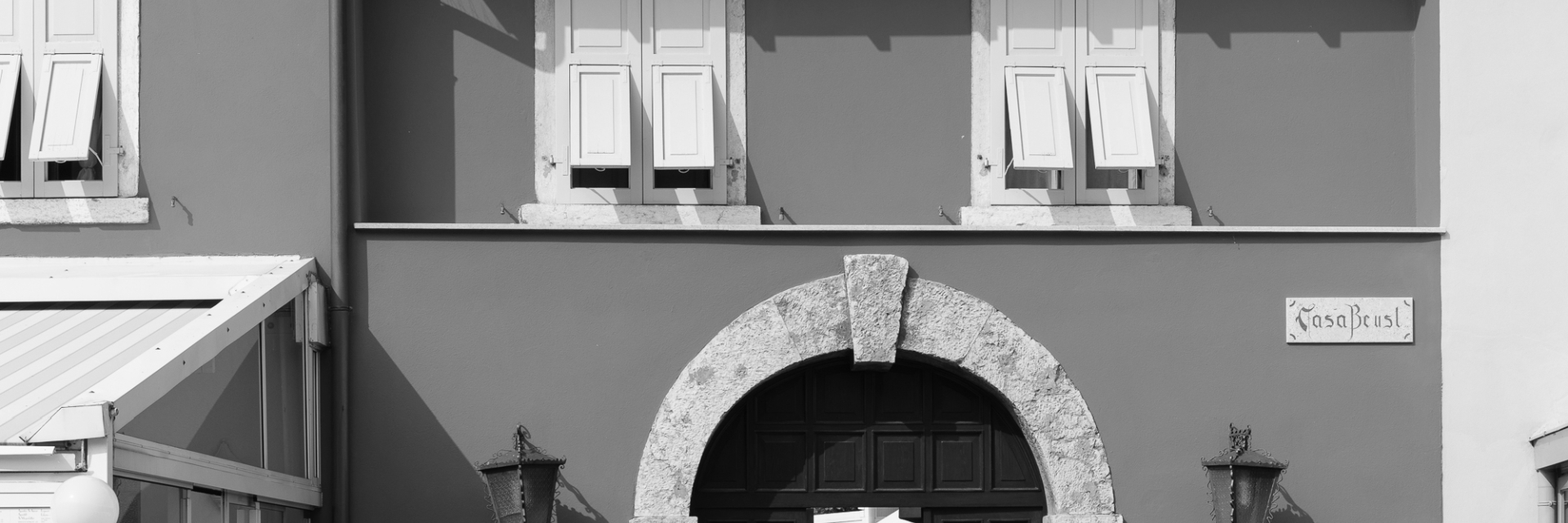 Tiroler Entry to the Boathouse. The signs read Tiroler Versicherung, and Tonelli Hotels.
